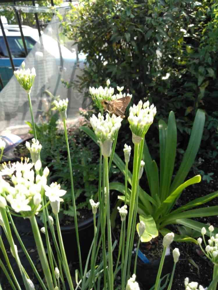小さな庭,ニラの蕾,蝶々と♬の投稿画像