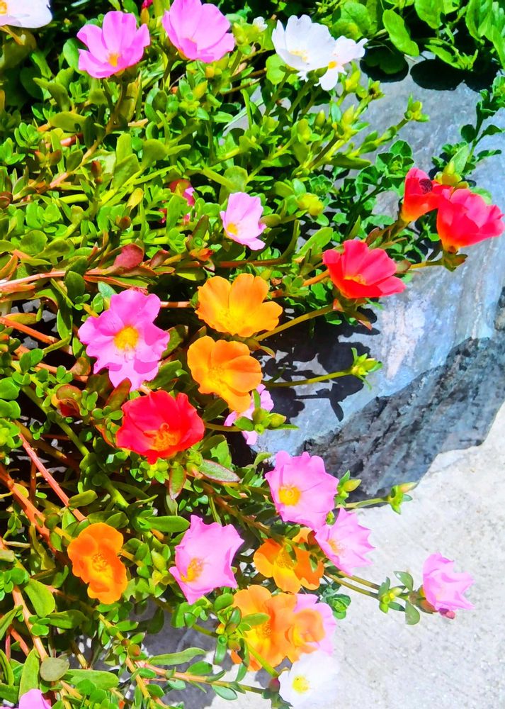 猛暑の中カラフルなポーチュラカが綺麗に咲いていますネ~🥰🎶