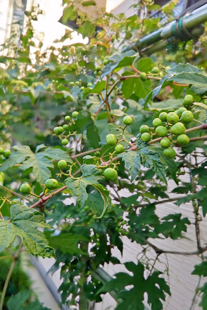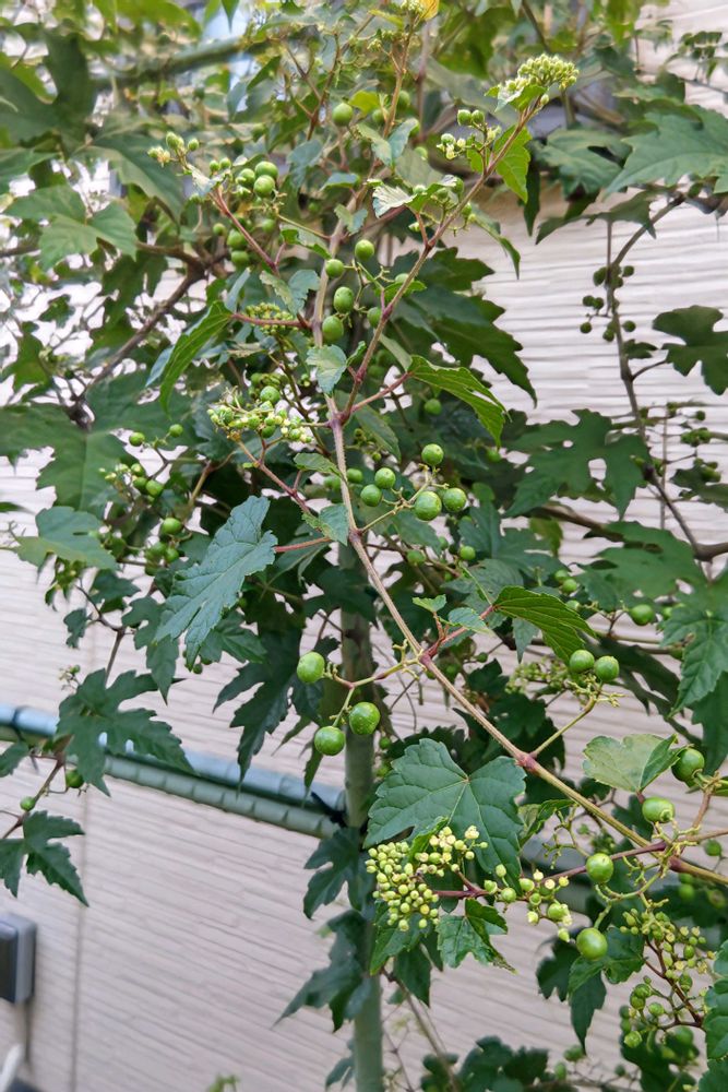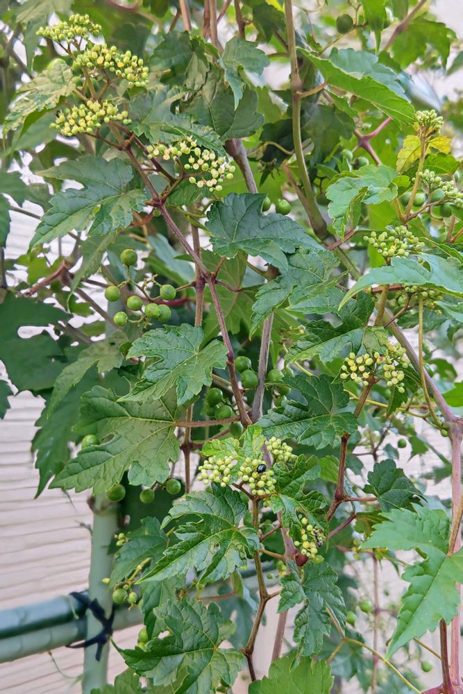 お庭に植えてあったのね…立派な棚を作りノブドウも手を広げ🍇