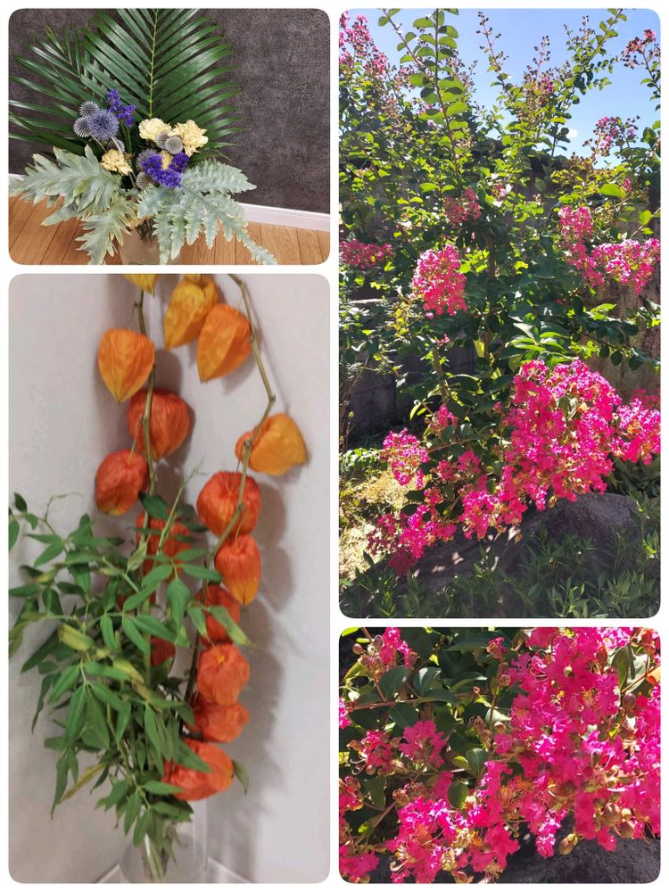大きい鬼灯と素敵なお花が生けていました。🤗