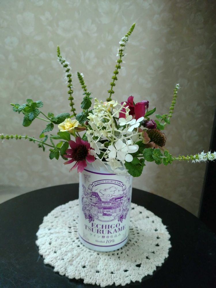 缶ビールかな、と思いきや、缶ワインですか⁇ ホント、この紫のデザイン、オシャレで、その缶を花器に使うまっky さんもオシャレですね〜!!
