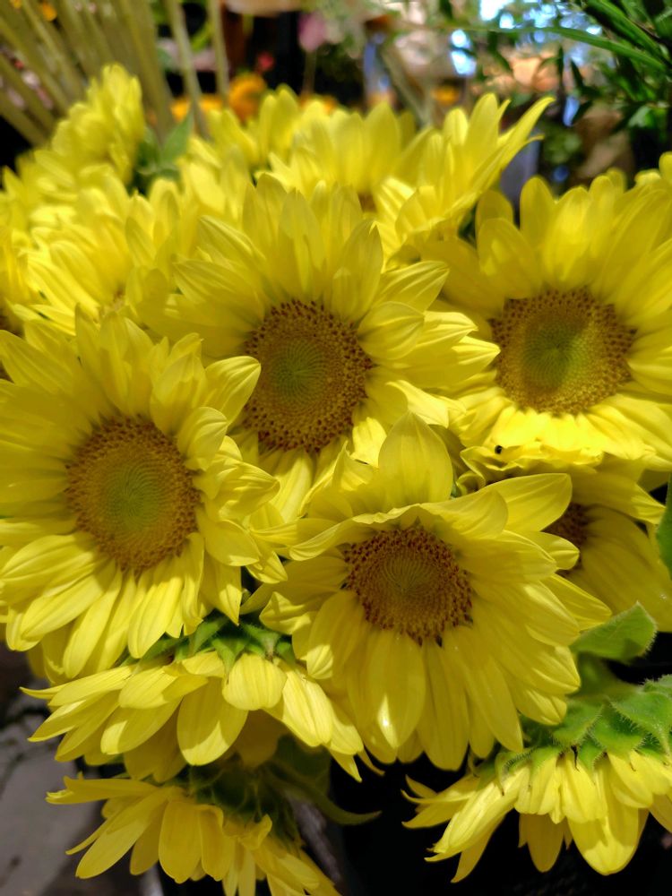 青山フラワーマーケットで写させていただきました‥真ん中も淡い色でステキなミニヒマワリ🌻🌻