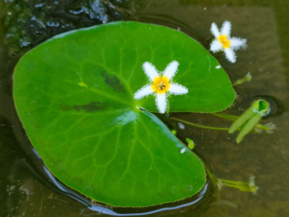 ガガブタはわが家にも昔からたくさんありますが、葉のつけ根から花が咲きます‼️☺またそのまま葉のつけ根から根が出てきます。冬越しの時は大きい葉が枯れその根が分離し、たくさんの根付き若芽ができます。早春それを鉢植えにし、睡蓮鉢等に沈めたらまた新しい葉が出てきます。本当によく増えます‼️☺もちろん浮いたままでも葉は展開しますが、捨てるほど増えます‼️