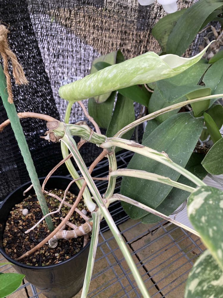 2025.8月に某サイトで購入した【アロカシア チャイ】の 突然変異?なんだろう 購入時、元々有った葉を(1枚目の葉)として、 下から新たな葉が出てきてる状態で到着しました(2枚目の葉) こちらに来て初めて出てきた葉に異変が。。 育て始めて出てきた初めての3枚目、4枚目 (途中から、斑1、斑2、、と続きます) どこまでこの謎の斑入葉が続くのか、 いや止まるのか……記録していきます