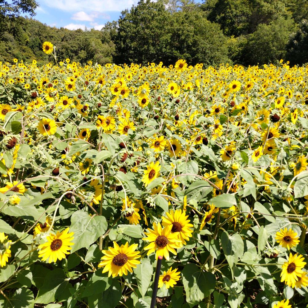 ③時期で植えられる花が変わる花壇。今はヒマワリでした🌻