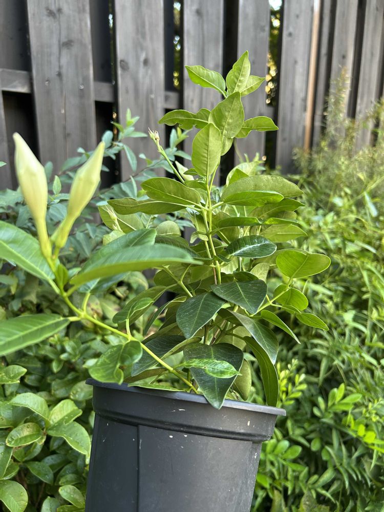 マンデビラ 夏場に強い子‼️の印象有ります〜♪🏡蕾がふくらみ これから 開花準備するのかなぁ📣〰️😙🤭🥳✌️
