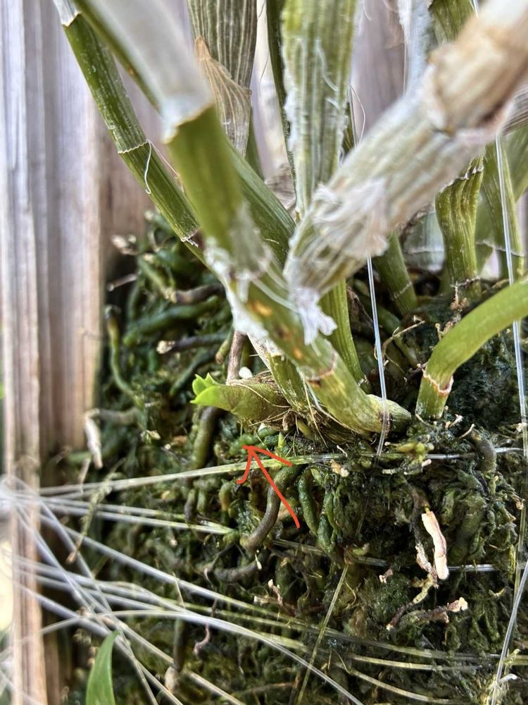 夏咲きのデンドロビウム、イザベルサンダーの新芽が2つ出てきました🌱🌱