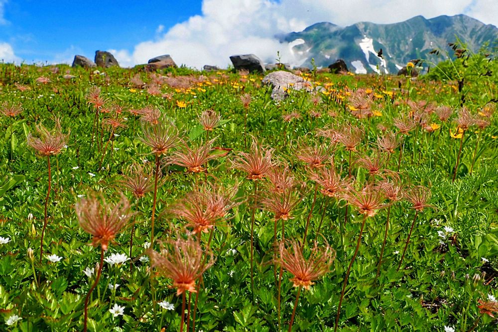 雪解けの後の夏山に、群落をつくったチングルマは高山植物の代表ですね。