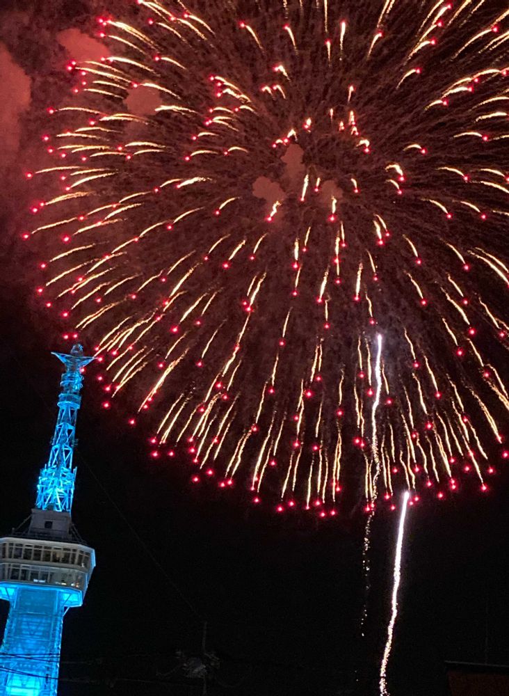 今日は、別府で宵祭りがあり花火が打ち上がりました!