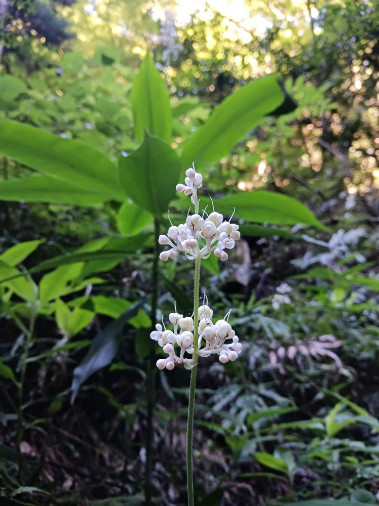 Googleレンズによると、ヤブミョウガというお花みたいです!