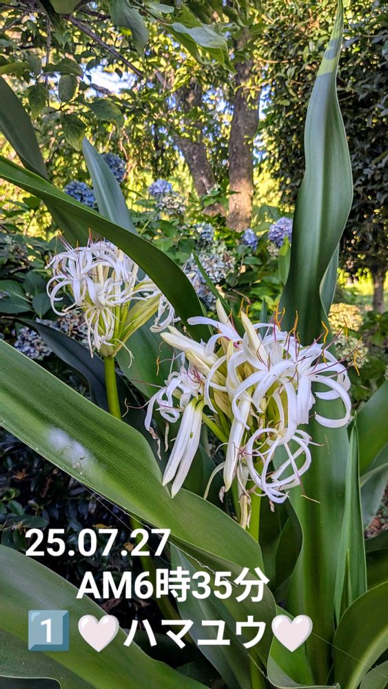 私もあまり良くわかりませんが一般的にハマユウと呼ばれていますが和名はハマオモトと呼ばれ同じヒガンバナ科のようですよ間違っていたらごめんね