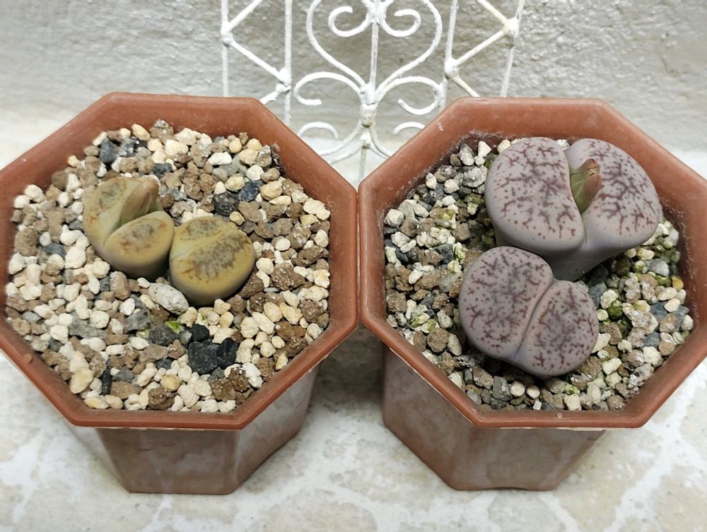 最近瑞光玉が先陣切って開花しましたが、次はこの2つのリトープスが開花しそうです😓