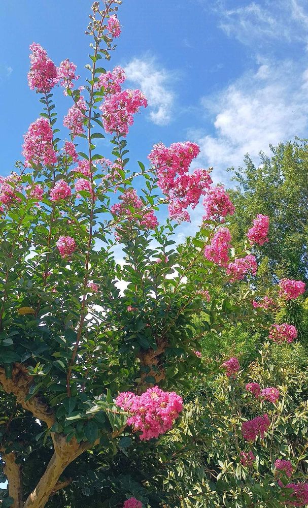 夏の青空に映える🩷🐵サルスベリさんとても綺麗ですねぇ😍ほんとに暑さに😊💪🏻💪🏻