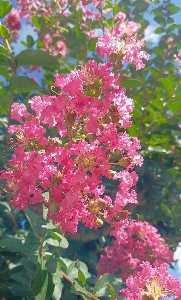 青空に濃いピンク色のサルスベリのお花が映えて🩷✨