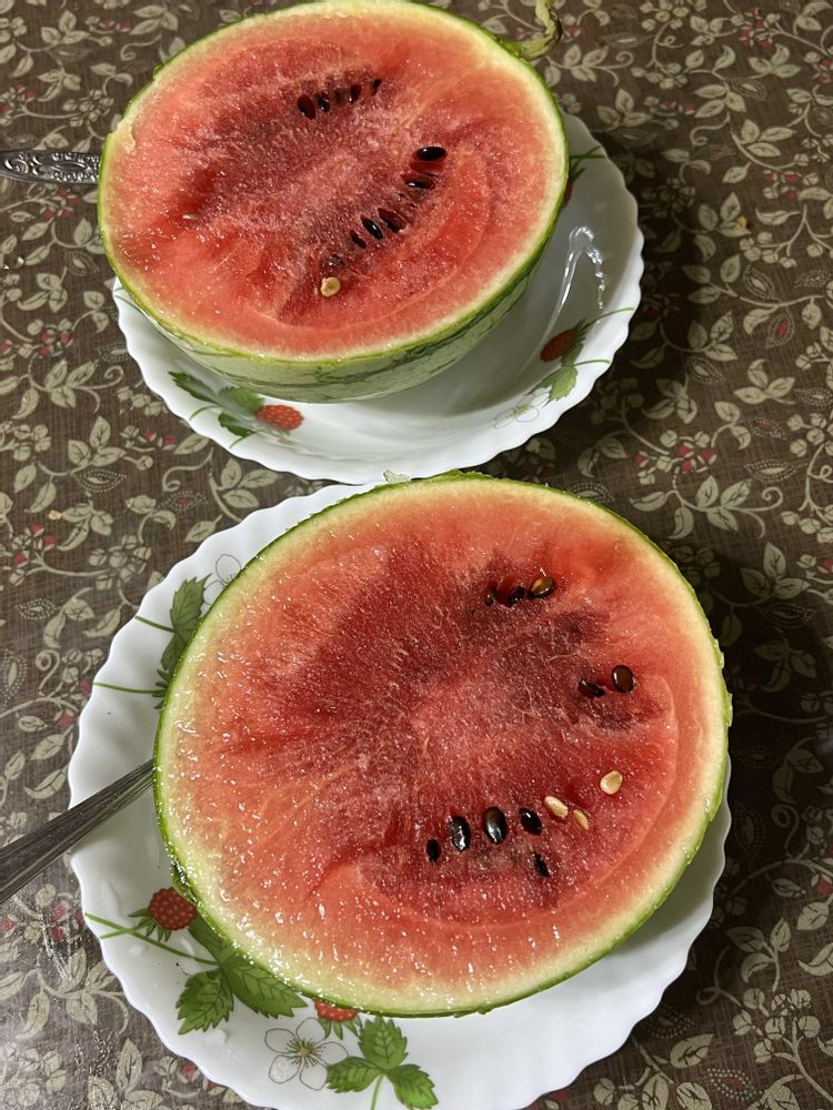 ⑤昨夕野菜畑自家製の紅小玉西瓜を夫婦で完食