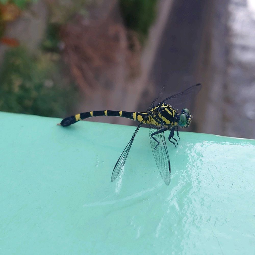 歩いていたらオニヤンマがひと休み、虎縞が妙に目立ってたな🐅