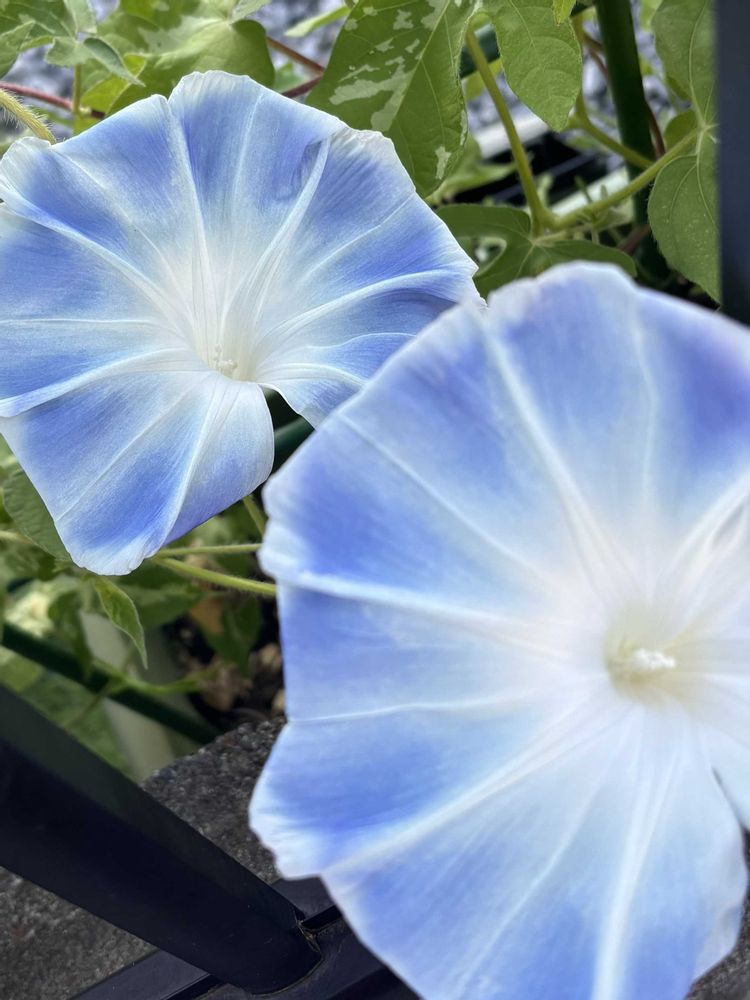 夏場は、咲いているお花が少なくなりますので、、朝早く咲いてるアサガオを見ると、ホッとします