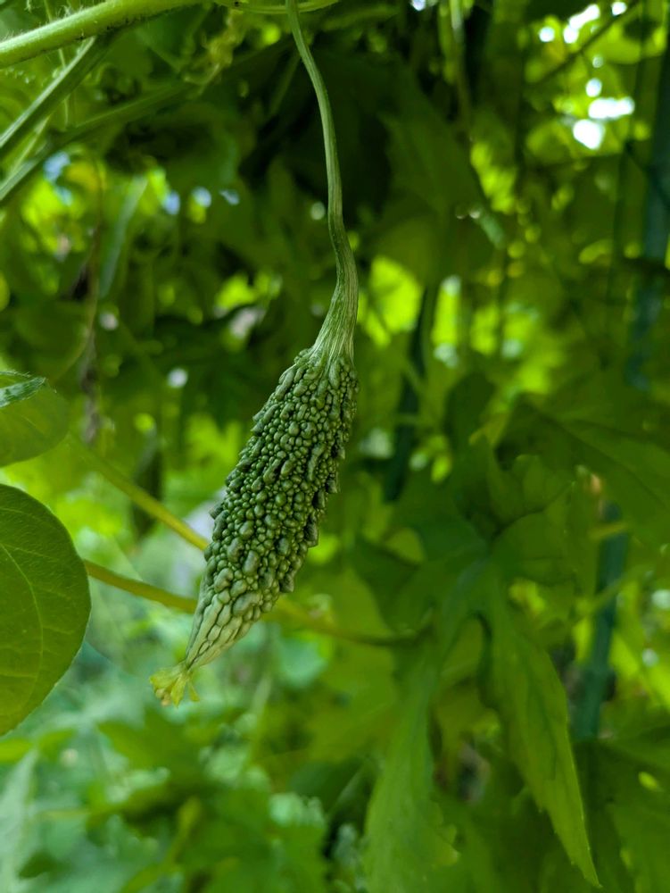 やっとゴーヤが、出来始めました。 毎年なんだけど、つるがすごすぎて手に負えない感じです。