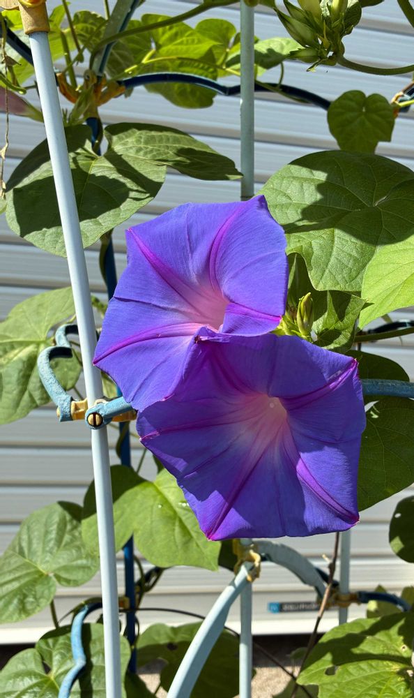 お花はピンク🩷とブルー🩵で、葉っぱ🌿も普通の朝顔より大きい感じ。