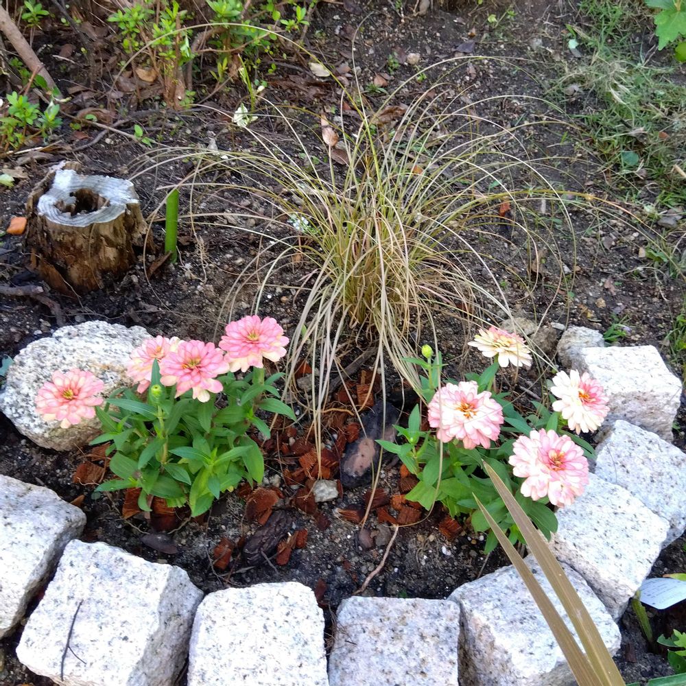 ジニアさんもグラスさんも地植えにされたんですね〜花壇いっぱいに咲いてくれますね💓
