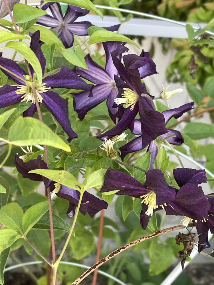 ④こちらも切り戻しをしていたクレマチス ロマンティカですがまた伸びて咲きだしました🎶