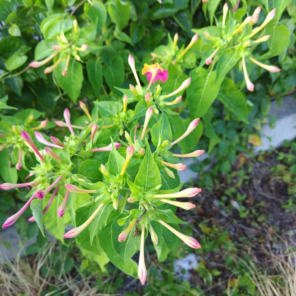 昨年勝手に蒔いたオシロイバナが今年も川沿いに咲いているのを散歩で確認しています🌸🌼