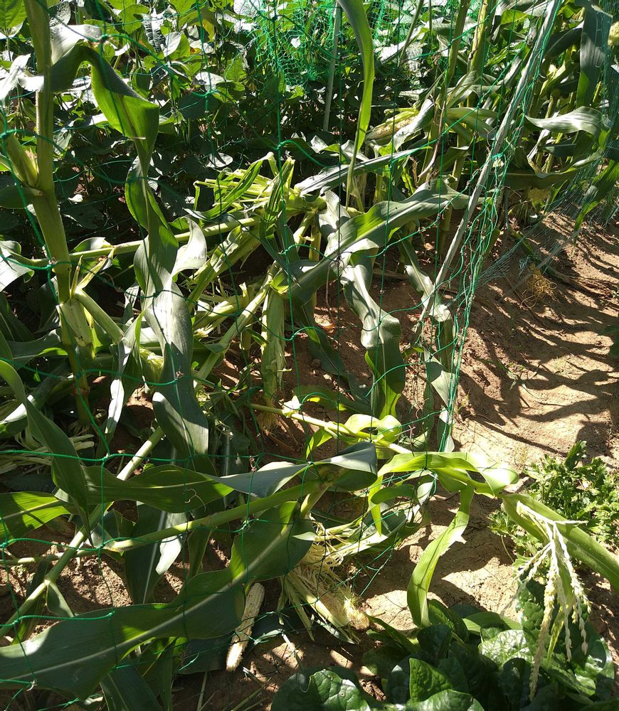 4枚目、カラス🐦⬛対策甘かったトウモロコシ、、、作付けした三分の一荒らされた😱