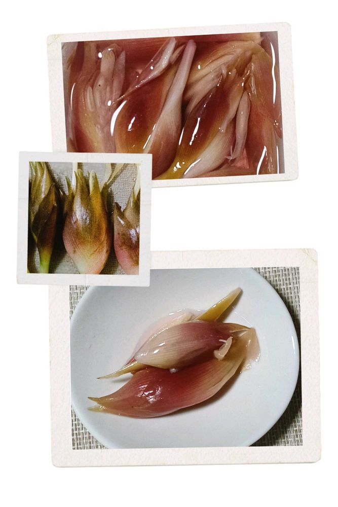 鍋に湯を沸かし、茗荷を1分ほどゆでてザルにあける