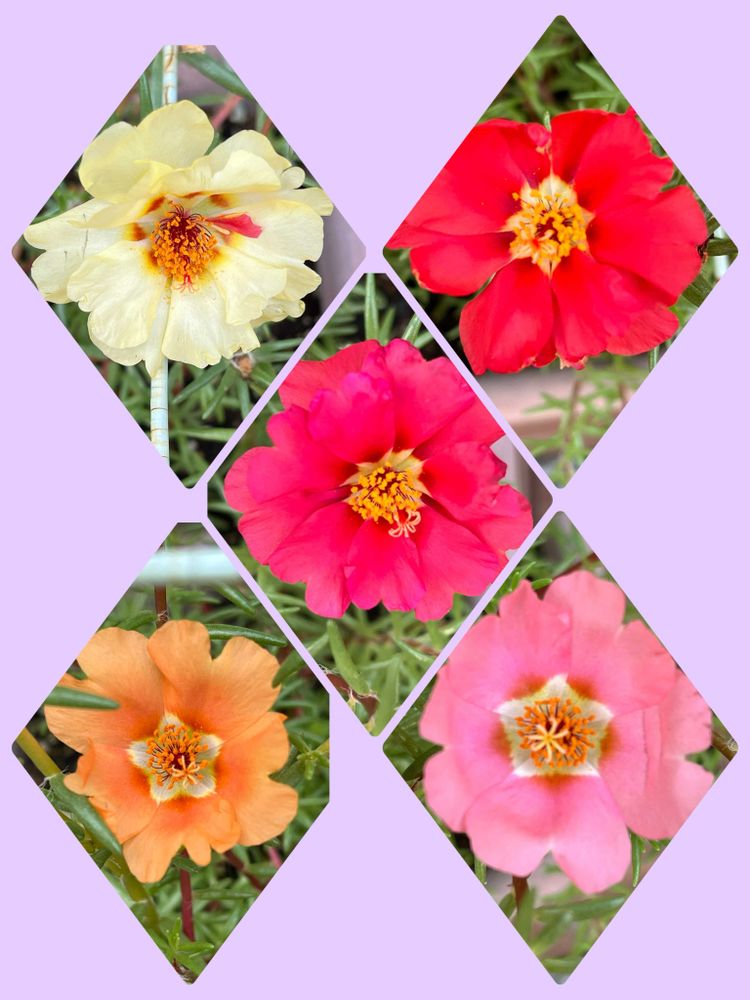 おはようございます。薄曇り、30.3℃、10:30ジリジリ暑い。八重松葉ぼたん、2世116日目5色咲きました。ハツユキカズラ鮮やかな葉っぱが生えてました。青肉メロン34日目雄花が咲きました。ミヨウガたくさん収穫しました。😻🥰😍😸😋☺️