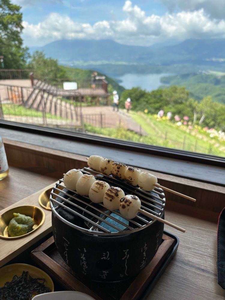 お天気も良くて最高の眺めですね😊焼き団子美味しそうですね