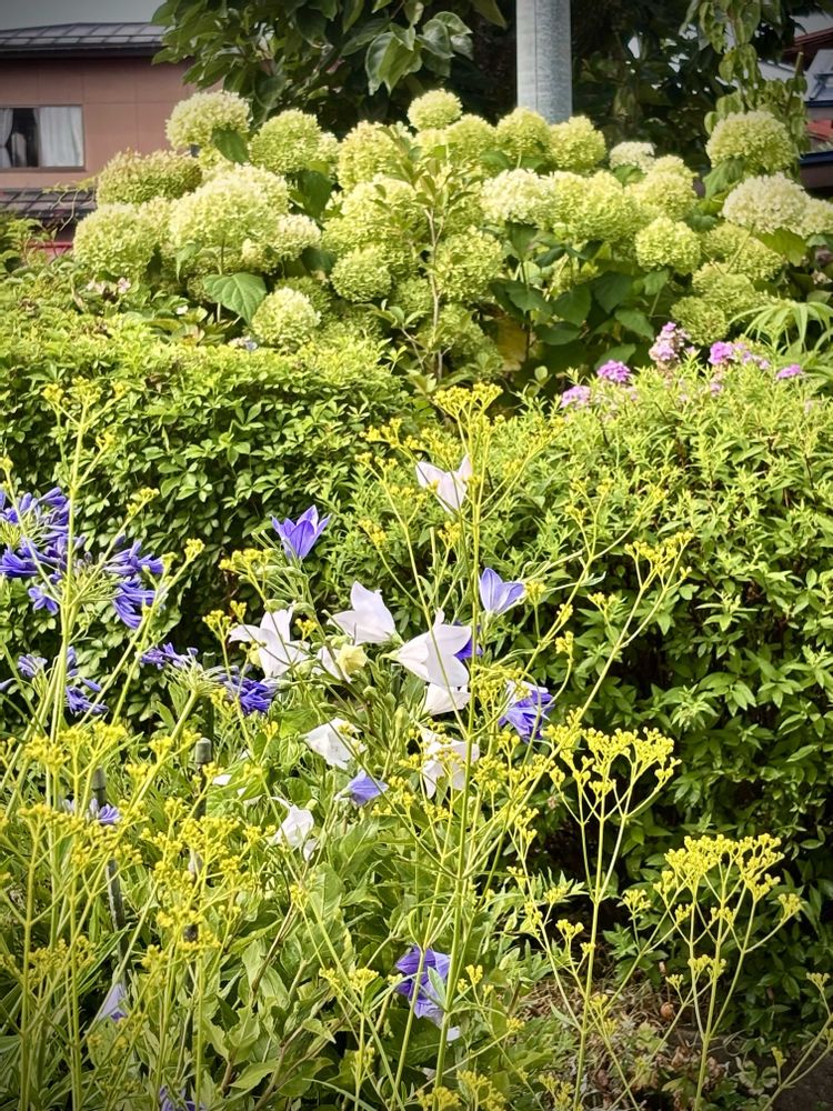 アジサイが終わるとアナベルが咲いて、キキョウ、オミナエシ 、アガパンサス、フロックスと暑さにめげず咲いてます。🤷♀️