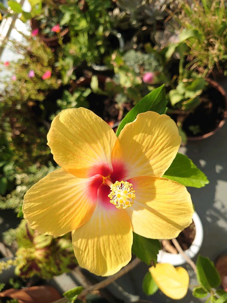 3️⃣ハイビスカス💛🌺咲いてくれました😊小ぶりです💛