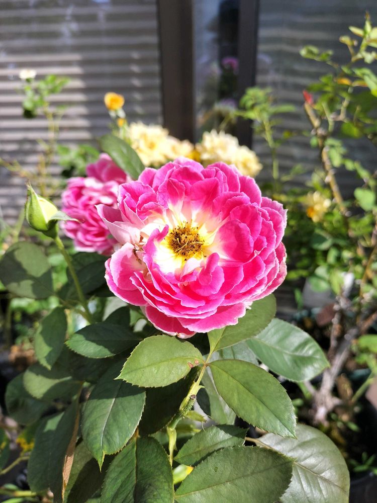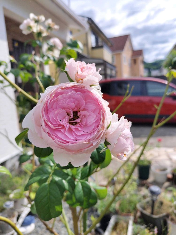 たっぷり水をあげてバラ達は東側に移動したり軒下の奥に入れたりして、なんとか枯れる事なく無事でした