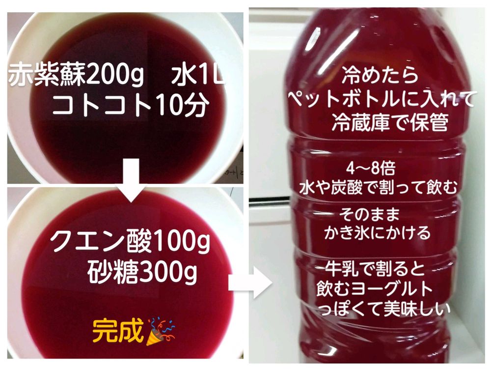 いただいた紫蘇ジュースがとっても美味しかったので レシピを教えてもらって