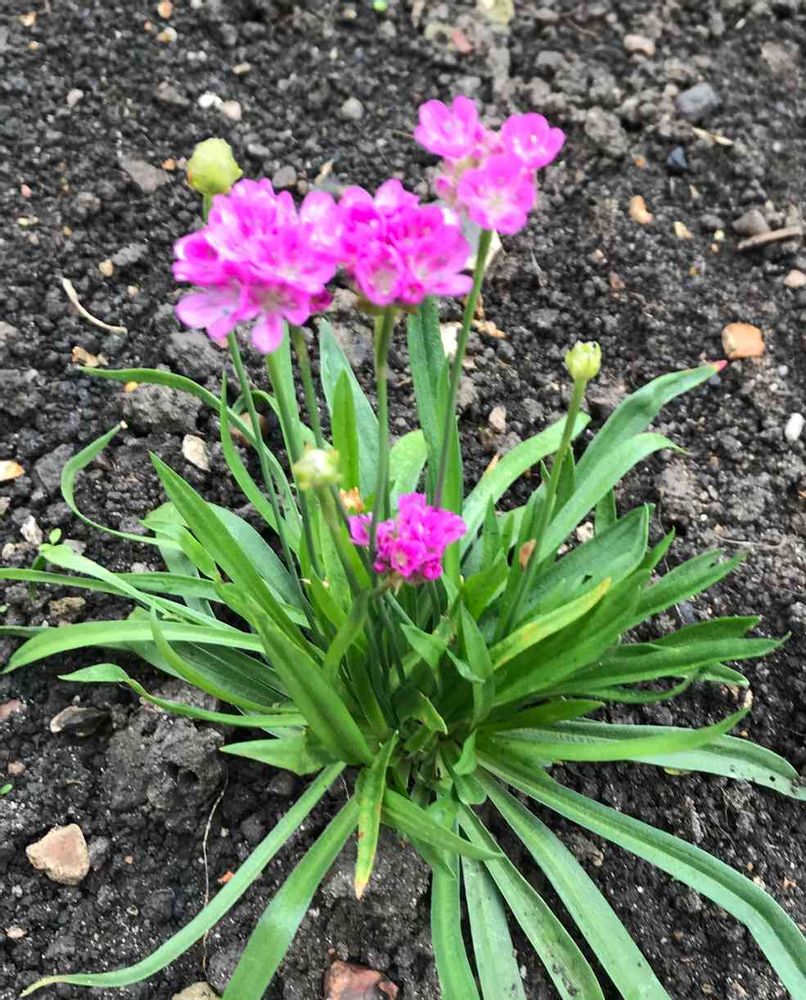 さん、Armeriaという植物で茎が長く伸びて、小さなお花が丸くまとまってピンクのポンポンみたい咲くらしいです。我が家のは少し広がって咲いてます。😊
