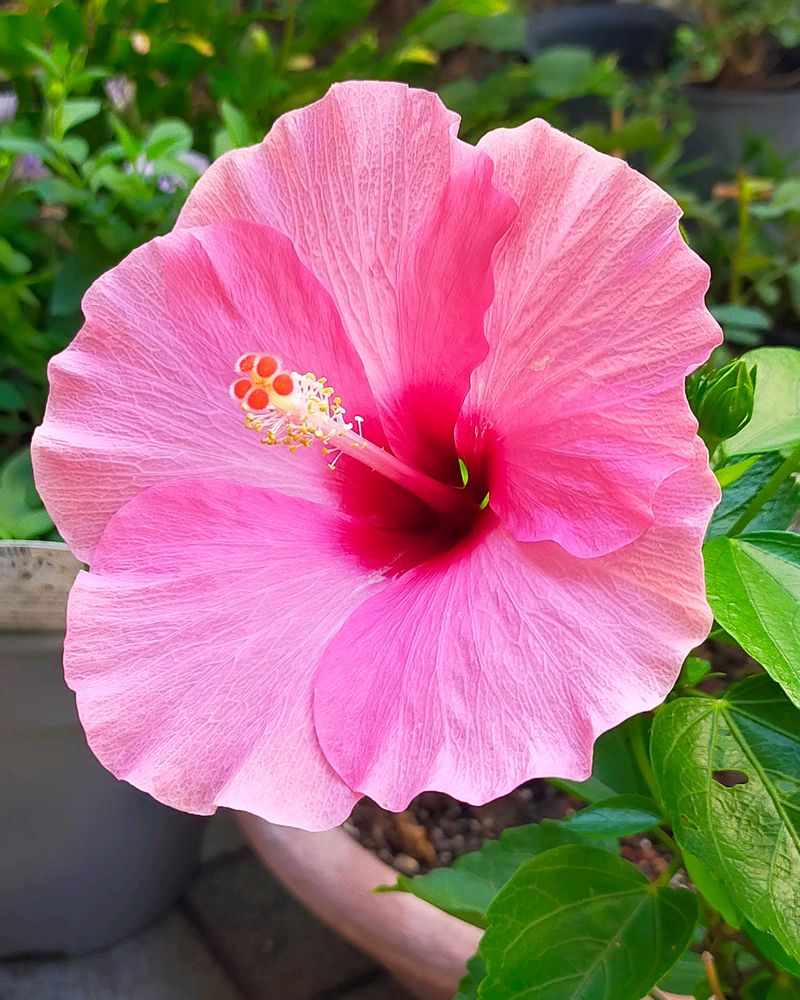 ロングライフハイビスカス🌺や切れ込みのあるタチアオも咲いてくれて💕