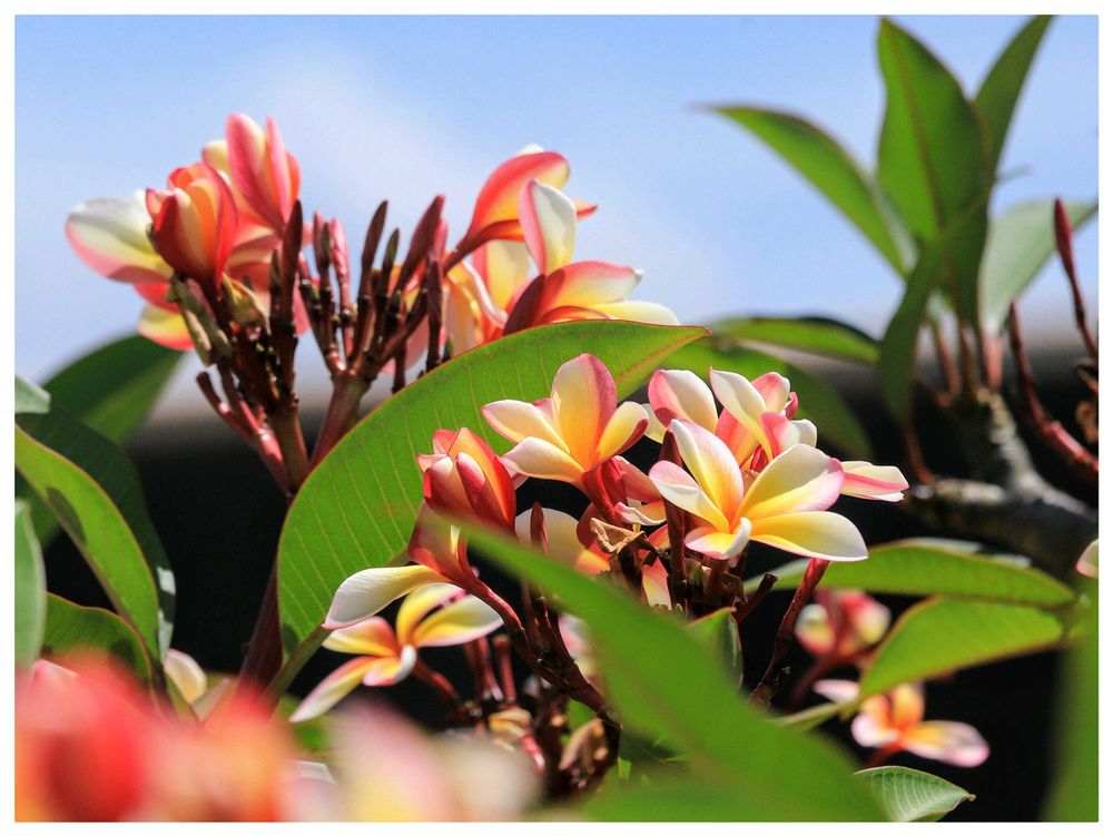 咲き始めのフレッシュなプルメリアの花を今年もいつもの植物園で見れました👍🎶