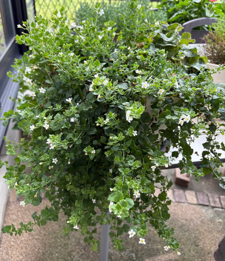 バコパさん、夏は弱いので明るい日陰に隠れてます。