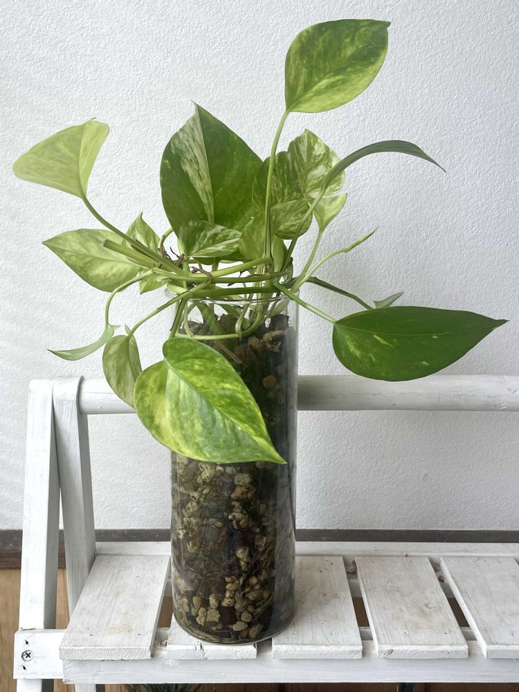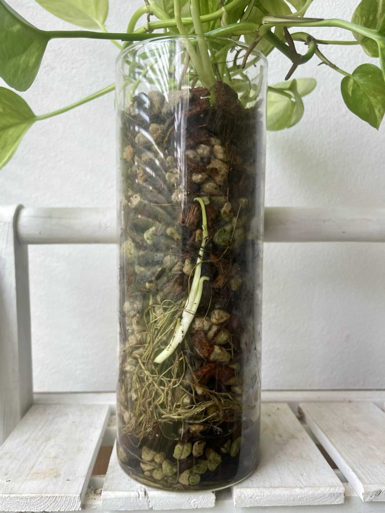 ホワイトアスパラの要領でホワイトポトスが育ってました🥶