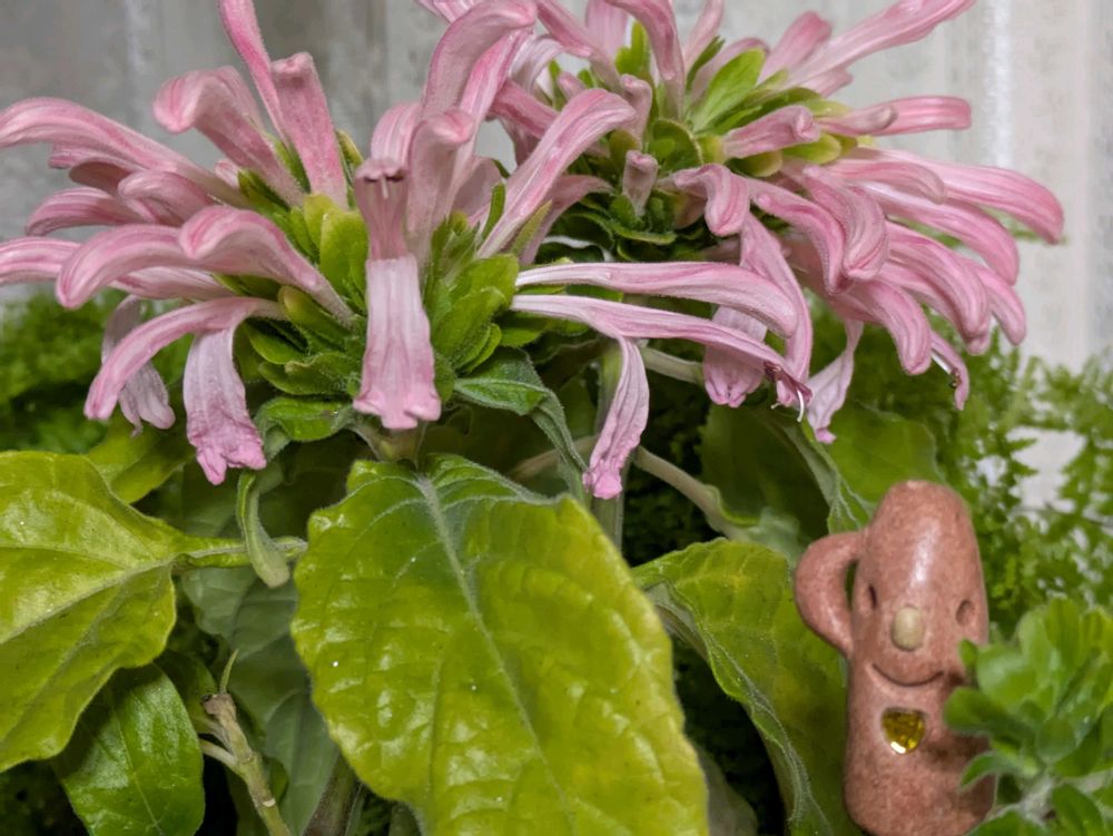 『あぁ〜っ』て言いながら外にある『サンゴバナ』を室内に入れてボクと撮ってくれたよ