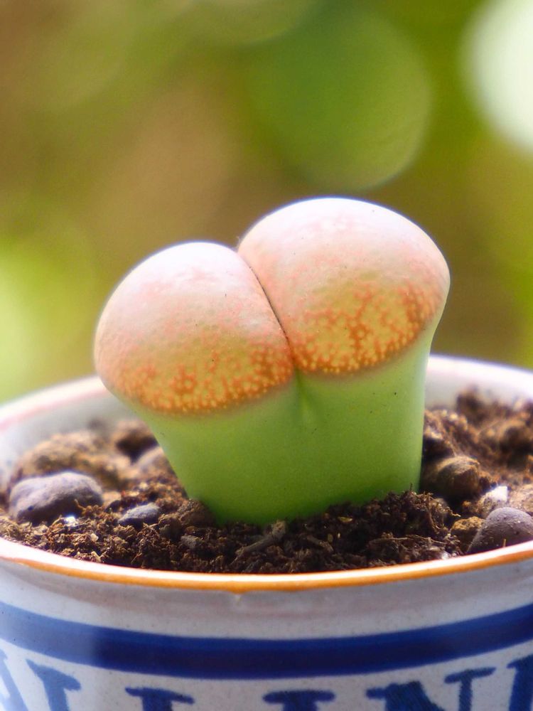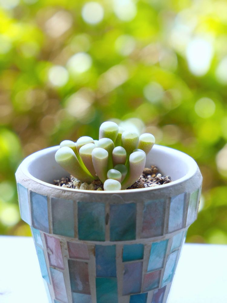 ぷりぷりのメセン、カップケーキのような、血走った昆虫の眼のような、不思議な魅力がありますね。鉢との相性も素敵です💓