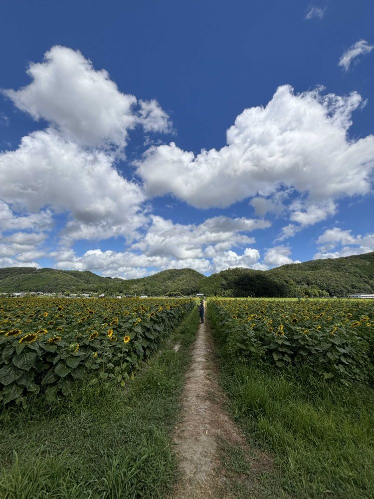 青い空と真っ白な雲とヒマワリが素敵ですね👏📸