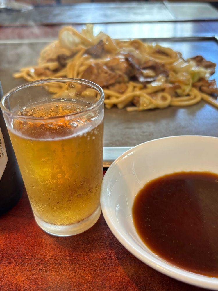 佐用町は、うどんとホルモンを炒めたやつを目の前の鉄板に乗っけてくれました。