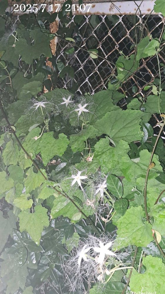 (自宅前の防火水槽のフェンスに絡み付いています。)