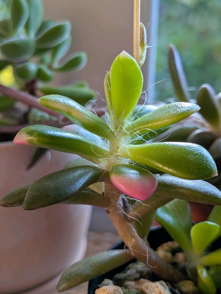 今朝庭🏡多肉植物の桜吹雪✨いい感じのピンク色と糸✨