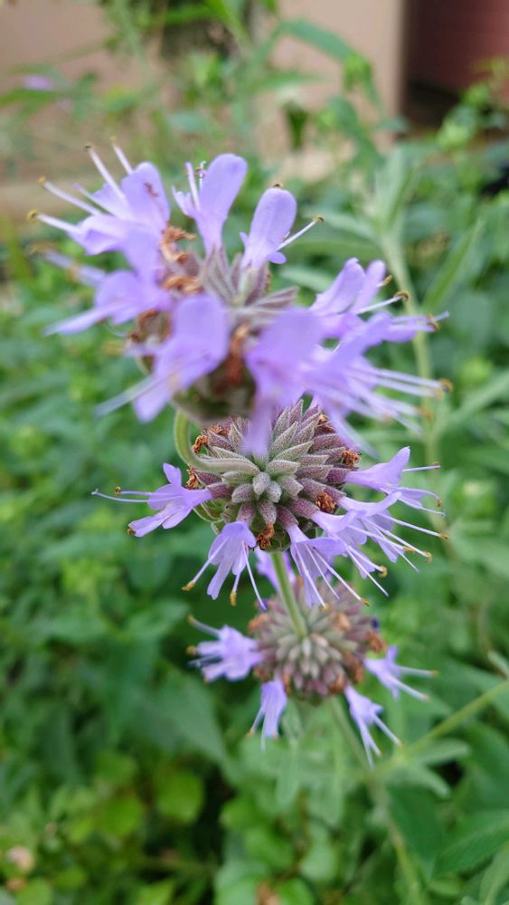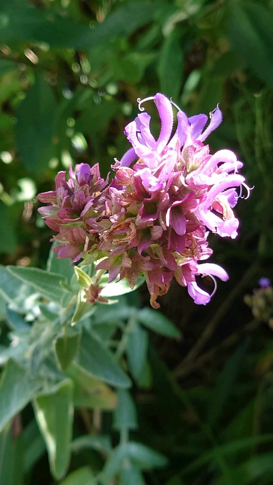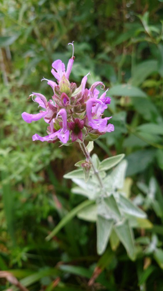 銀葉で産毛があり薄紫色の花はセージの様な爽やかな香り