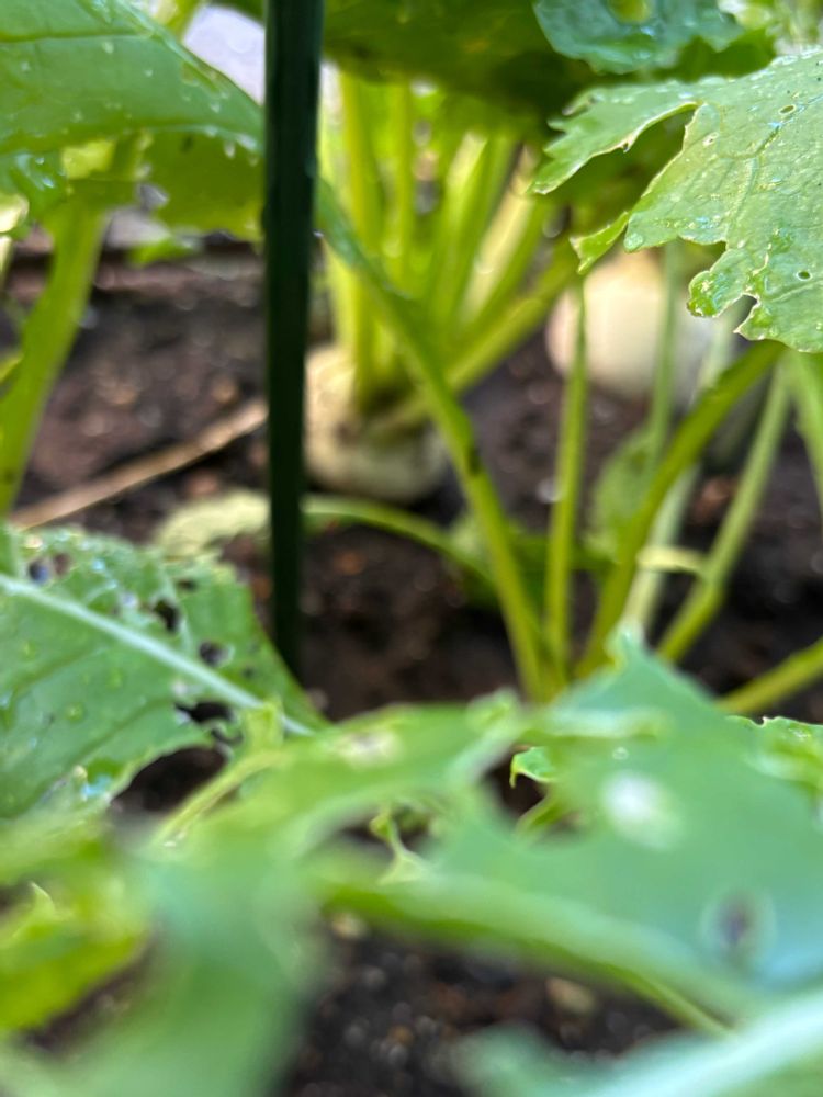 トマトとトマトの間の隙間に植えている小蕪、収穫できそうなのが何個か😍