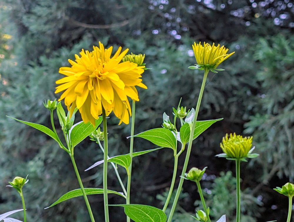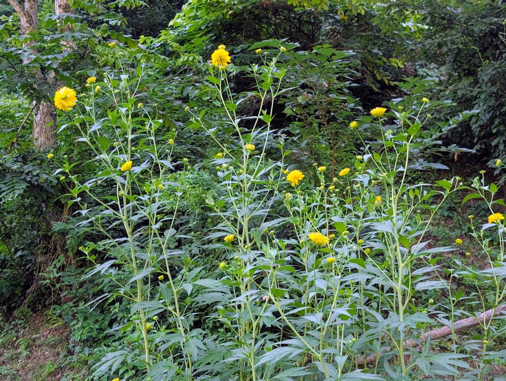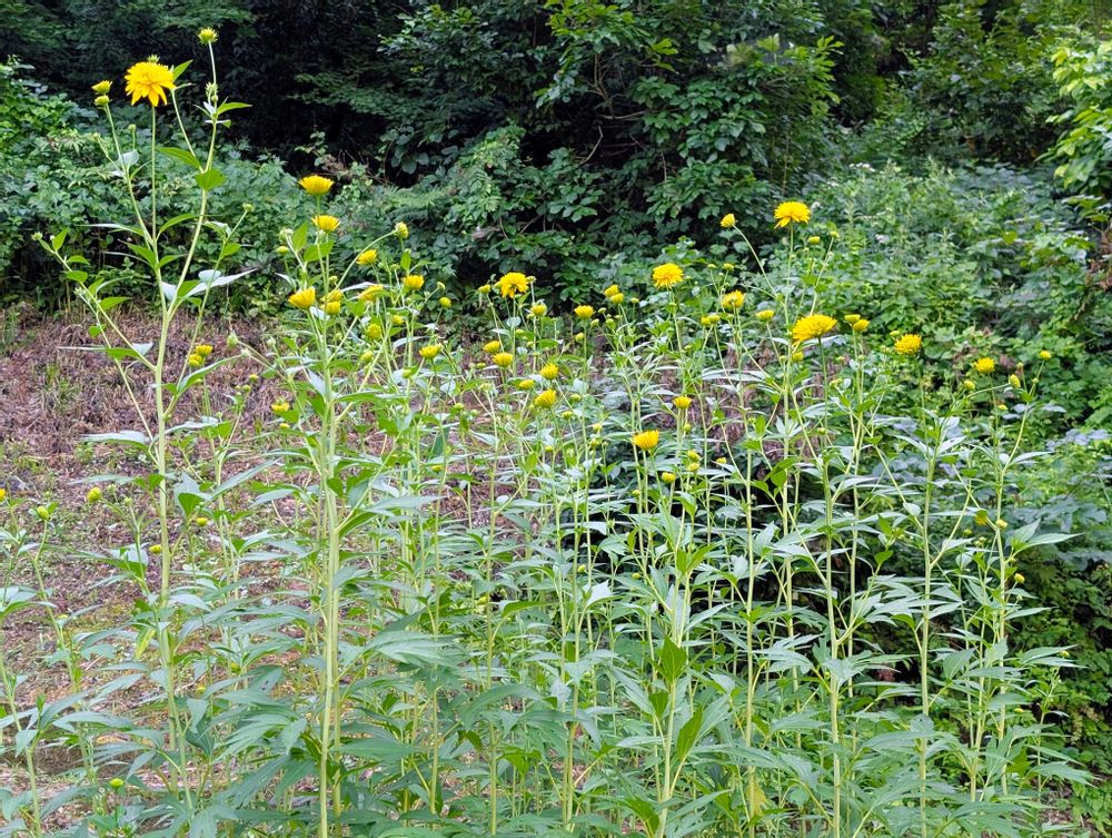 さん、どういたしまして😅黄色で目だつ花ですが雨が降ると花ビラに水分が貯まるので茎がもたないで折れるのがマイナス😧背丈が伸びすぎだからね😅花に防水を施したらと思い過去に屋根をかけた時がありますが家族に総すかんでした😅雨がまだ降る見込みがないので沢の清水が少なくなりました😢今日は猛暑日です🥵