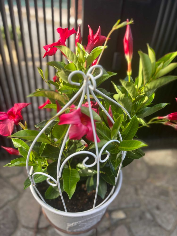 赤と白ですが赤色はとても元気良くツルも1本伸びて支柱立ててます♡