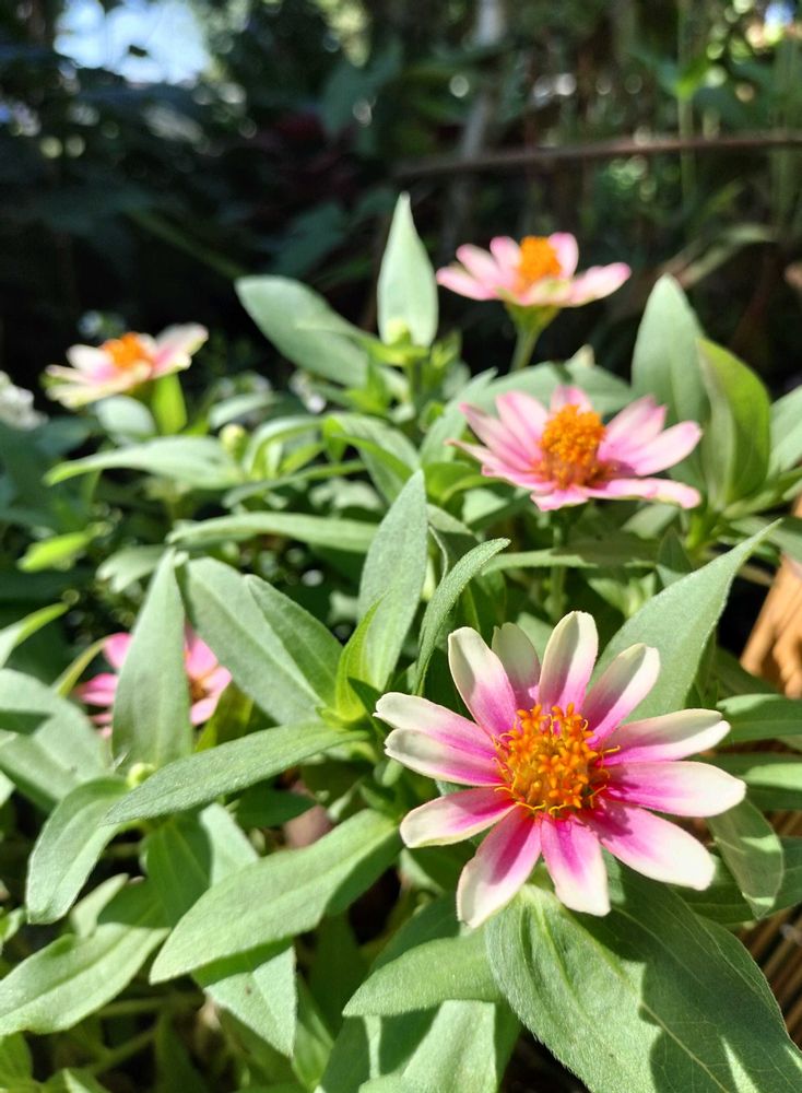 お隣さんにいただいたジニアが、庭の一番いいところでたくさん花をつけています🤗✨